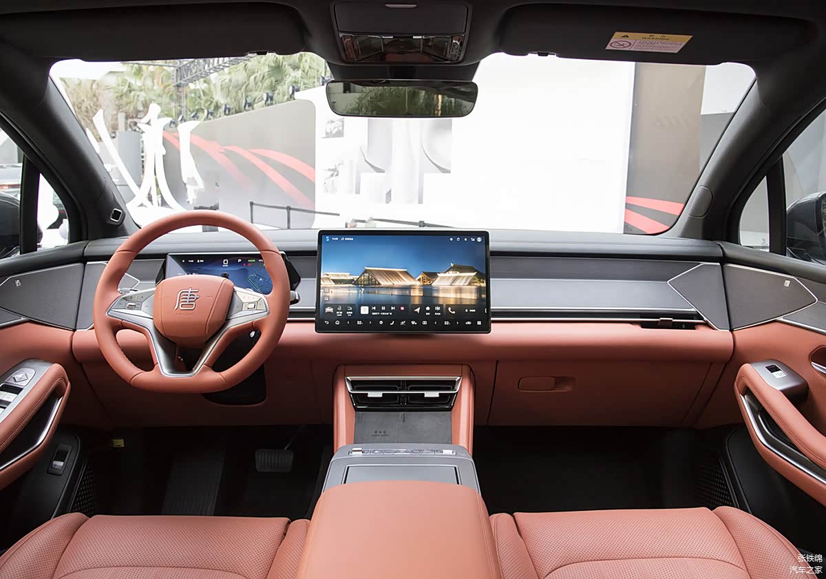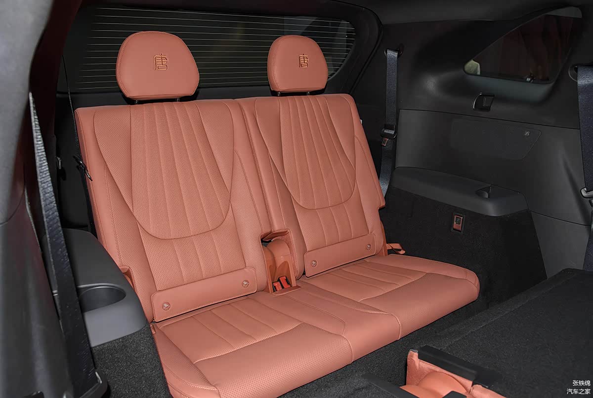 新车将会有6座和7座版本,此次亮相的实车为7座版本,使用了2+3+2布局,第二排的地板很平整,另外除了前排扶手箱带有冰箱,扶手箱后部也为第二排提供了冷暖冰箱。全车7个座椅的头枕上都带有汉字“唐”刺绣装饰,有着不错的精致感。