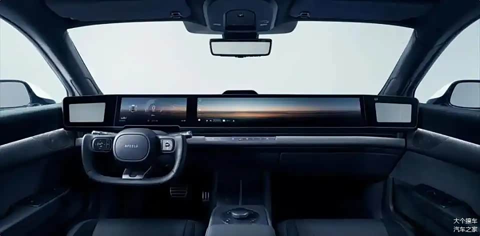 车辆的内部装饰也继承了其外观的简洁线条设计。座舱中最引人注目的部分是一块横跨中控台的超长显示屏,它将中控屏、仪表、副驾娱乐屏和电子外后视镜的屏幕连接在一起。这种设计在国产汽车上已经不是什么新鲜事了,而且黑边比较大,缺乏质量。需要特别指出的是,这款车的内部装饰使用了高达70%的面料,包括植物纤维、人造皮革以及废品回收等,虽然在环保方面表现得相当出色,但却缺少豪华的感觉。