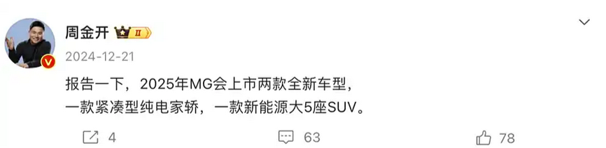 宝骏享境和全新大型SUV将登陆市场,此外,五菱缤果和星光的巧克力换电车型也将在2025年推出。