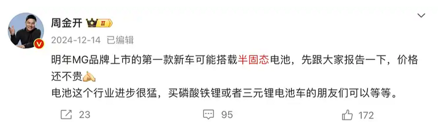 名爵计划推出6款新车型,覆盖轿车与SUV,进一步拓展新能源市场。其中一款或将搭载半固态电池与DMH插混动力系统,为消费者提供多样化选择。