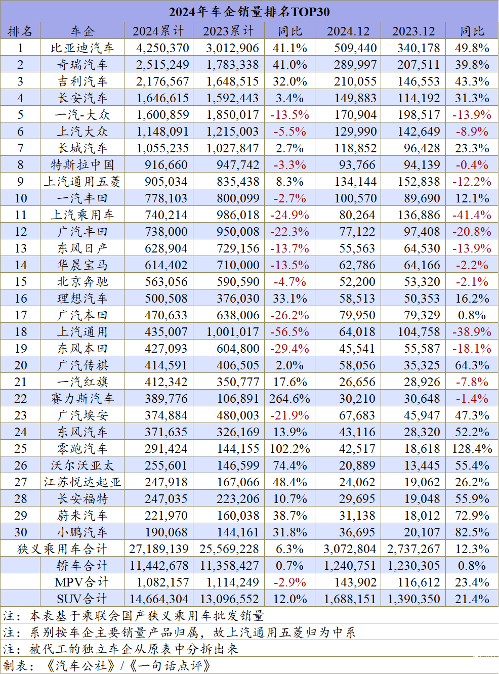 在补贴政策的强劲推动下,2024年的乘用车迎来了不错的收官。来自乘联会全年的数据显示,狭义乘用车批发的总计销量达到2718.91万辆,同比增长了6.3%,给全年艰难的车市带去了曙光。