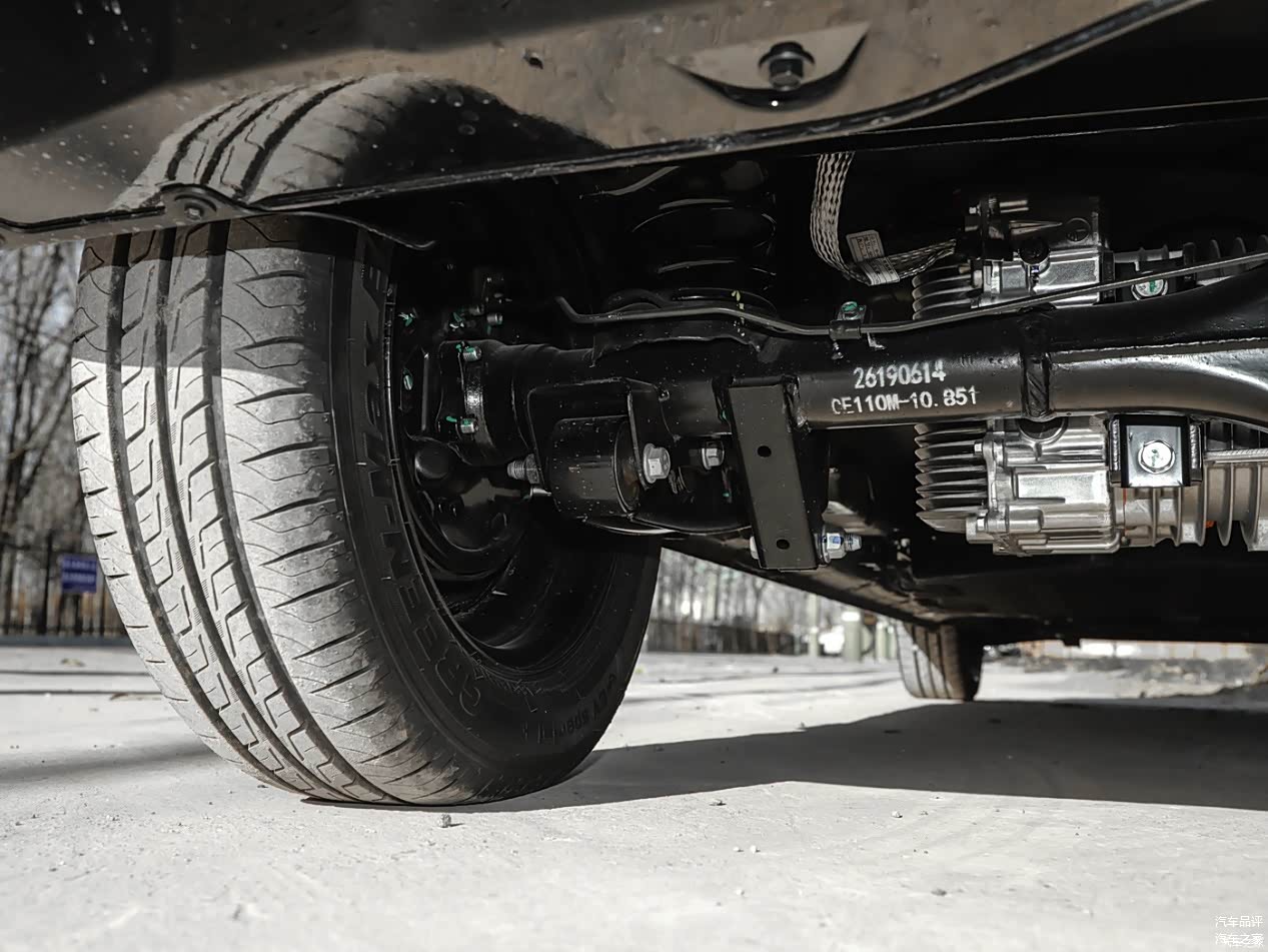 动力方面,橙仕01同样采用了后置后驱的动力布局,搭载了一台总马力30匹,总扭矩140牛米的电动机,并为之匹配了一块17.305度的磷酸铁锂电池,NEDC续航达145km(NEDC数值较CLTC偏小),支持快充,不支持外放电。底盘方面,采用了前麦弗逊式独立悬架+后钢板弹簧式非独立悬架的组合,前后轮胎规格均为165/70 R13。