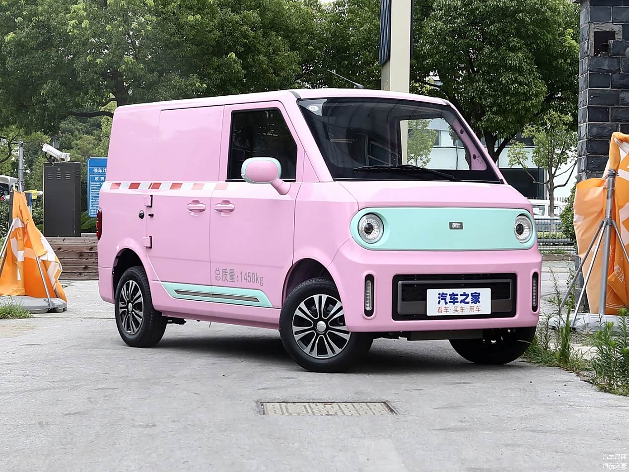虽然是一款商用车型,橙仕01的配色还挺出乎意料的,采用了马卡龙色系的粉色和薄荷绿色相互搭配,两个圆形的头灯像极了卡通呆萌的眼睛,可爱至极,颜值满分。这台车还有一个亮点,就是它主驾侧后排没有车门,仅配备了不规则车窗,而对侧仅有180°开启的对开式车门,而没有车窗。我们也看到不少博主在网上分享的咖啡车改造经验,后期这个车窗可以用来张贴招牌、价目表,也可以假装LED数显屏随意切换展示,非常好玩。