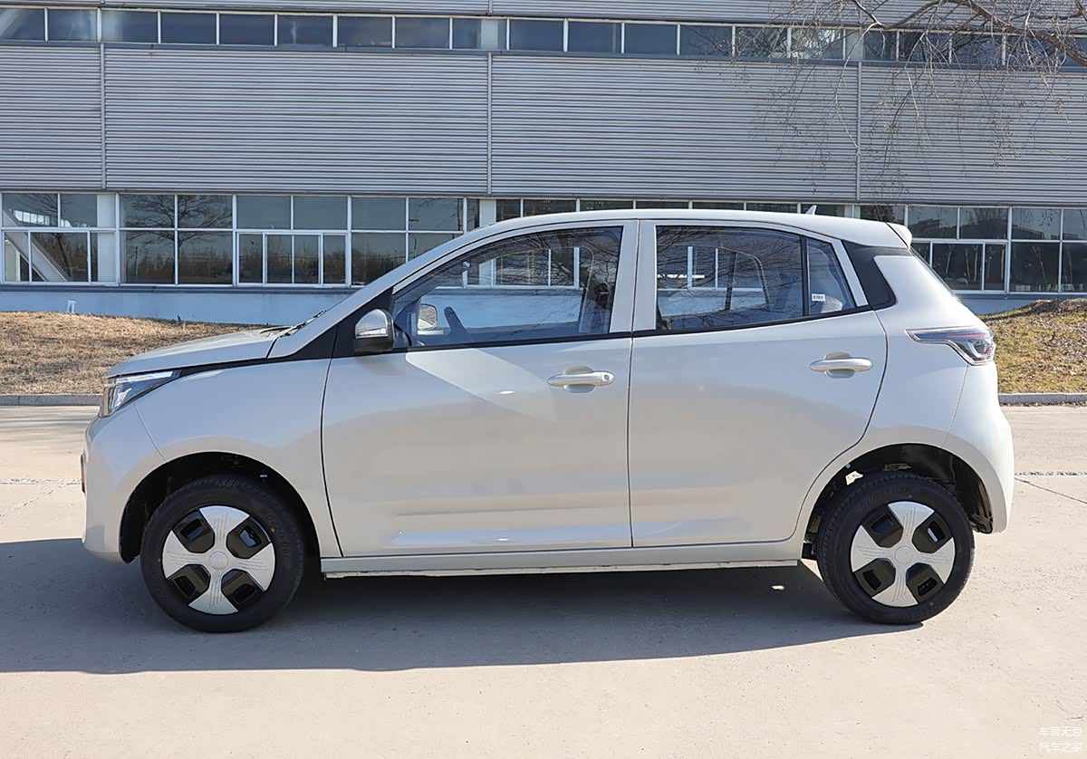 车身侧面造型很简洁,大灯外侧的黑色饰条贯穿机盖缝线和前门后视镜相呼应,车身线条很简洁干练,车门下部使用了立体式的线条装饰。尺寸方面,新车的长宽高分别为3620/1610/1525mm,轴距为2440mm。