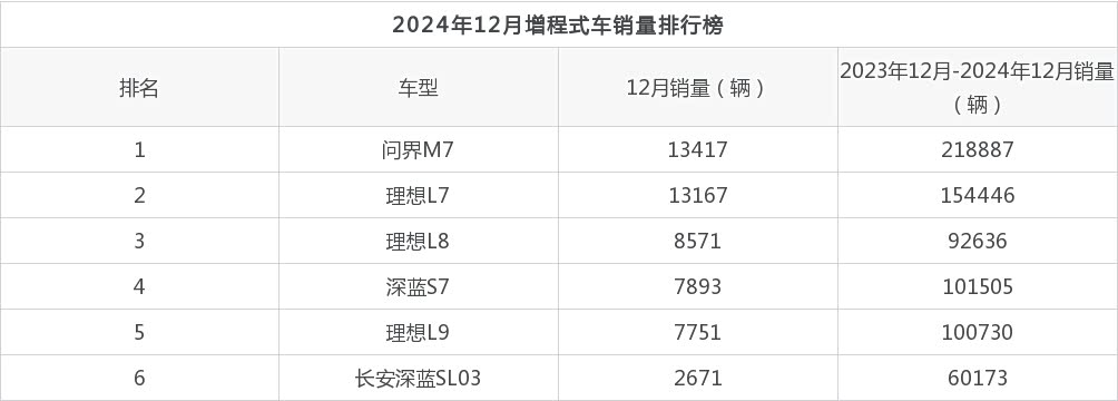 2024 年 12 月,国内乘用车市场激战落幕,一场没有硝烟的战争结果尘埃落定。众车网为您深挖市场内幕,尤其是增程式车领域的销量风云变幻,带您一探究竟。