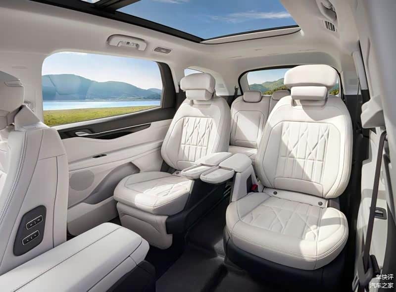 重点来了,如果你选择2+2+3的座椅布局,这台车带给你的就是MPV的享受。第二排不仅有独立座椅,同时还支持电动调节和通风加热,并且前后两排,均配备有手机无线充电功能。