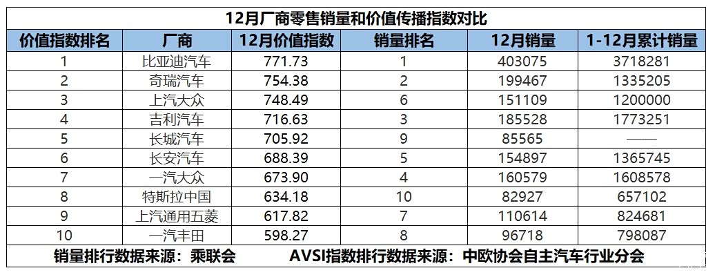 在当今激烈的汽车市场中,销量和品牌传播似乎是衡量厂商成功的两大指标。然而,这两者真的存在直接关联吗?又或者,在众多车企中,销量和传播是否可以单独成为制胜法宝?1月25日发布的2024年12月厂商销量与传播指数数据,揭示了销量与传播之间的微妙关系。