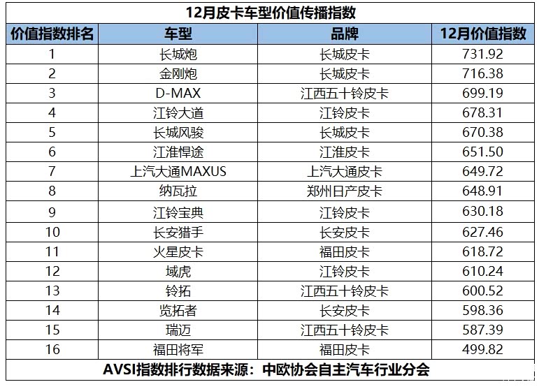 随着中国皮卡市场竞争日趋激烈,品牌和车型的价值传播指数成为了衡量企业营销效果和市场表现的新焦点。从最新的2024年12月皮卡品牌和车型价值传播指数来看,长城皮卡与长城炮依然稳居领先地位,但这一现象背后所折射的趋势值得关注。