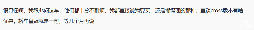 但令人意想不到的是,Sedan从上市之初便“一车难求”。部分门店表示需要等待数月,最多要等半年之久。有网友表示,到4S店咨询该车型时,销售人员都显得“不太耐烦”,直接推荐Crossover版本,并表示有优惠。