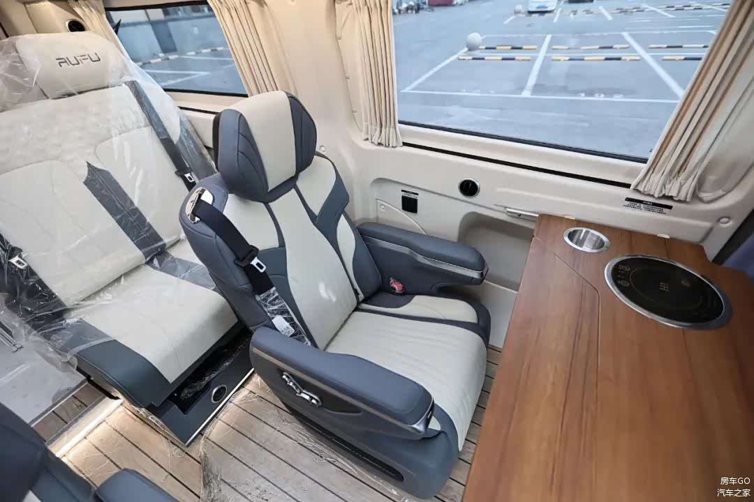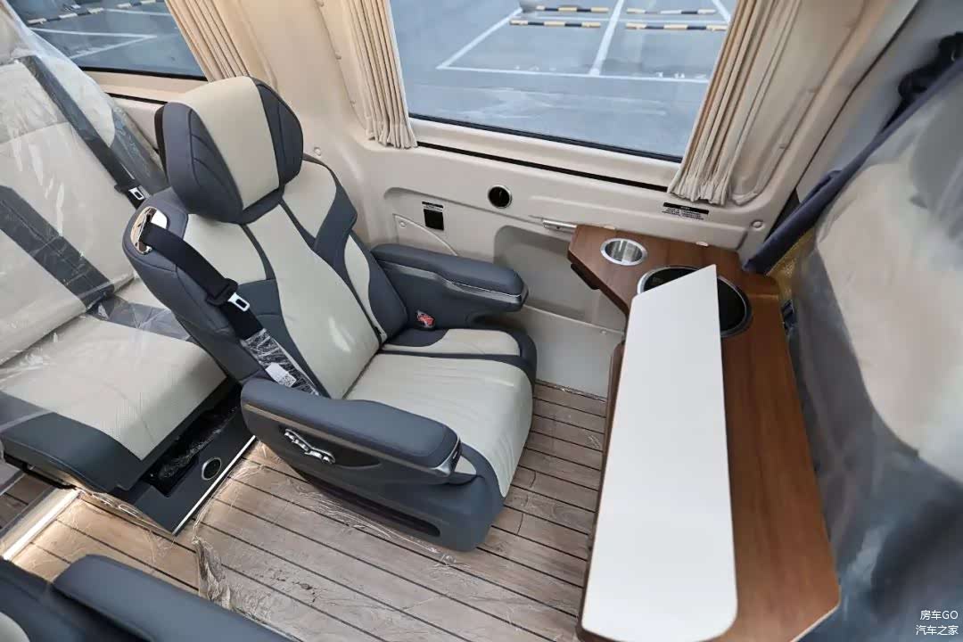 桌板是可以拓展的结构,同时副驾的座椅可以向后旋转,来组成更大的会客区。