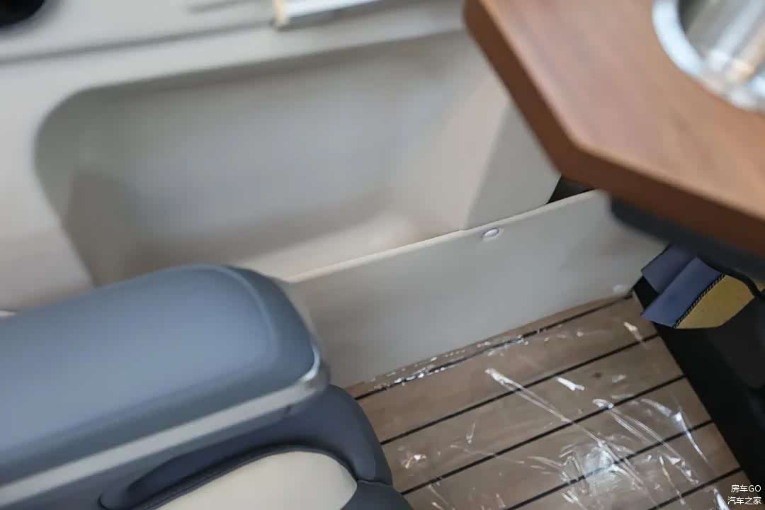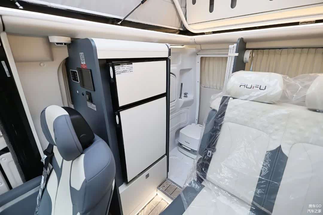 车内配备了一台118升的房车双开门冰箱,有着22升的独立冷冻室。上方有开放式的储物格,下方还有一个储物抽屉。