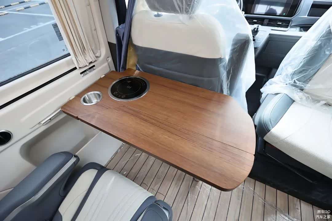 桌板上内嵌了电磁炉,增加了杯架,侧窗采用隐私玻璃。
