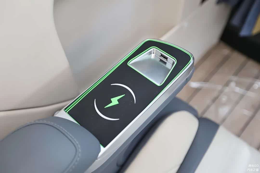 左侧的扶手向后拉,可以看到有手机的无线充电。