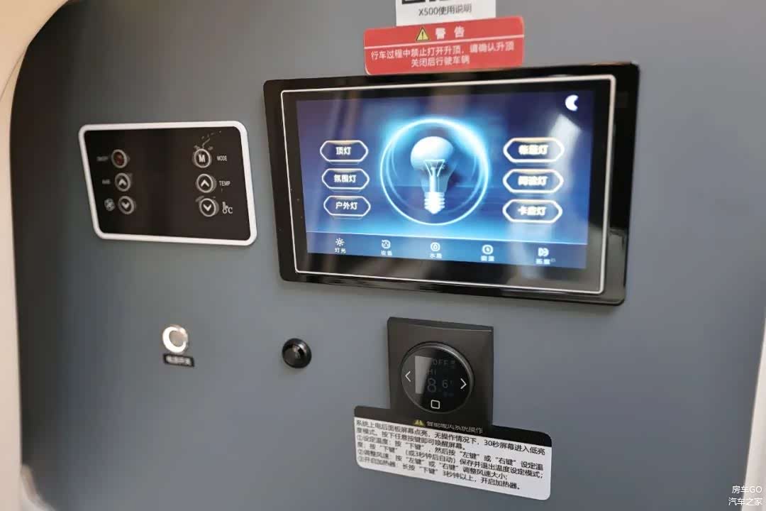 在触控面板内,可以控制灯光以及设备,并且可以查看水和电的状态。升顶机构的控制也可以在这里操作,除了前文提到的水电配置,供暖设备有燃油加热器以及底置空调。这款瑞弗X500主打驾驶灵活性以及多使用场景,新车售价汽油版41.5万、柴油版42.5万。