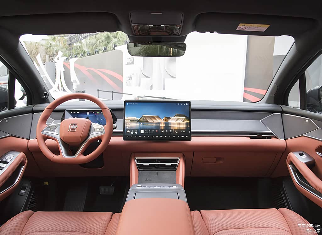 比亚迪唐L的内饰设计灵感来源于中国传统建筑中的庑殿顶,打造出最适合中国用户的旗舰级座舱空间。配色方面,新车提供了棕色和白色两款内饰配色,营造出温馨舒适的驾乘环境。大量软性材质包裹以及类似哑光灰金属色的装饰板提升了车内的豪华质感。中控区域采用了悬浮式中控屏+液晶仪表+AR-HUD抬头显示的组合,兼顾了科技感与豪华感。同时,新车还配备了前排手机无线充电、迪声音响、车载冷暖冰箱、香氛系统、全景天窗等配置,提升了乘车的舒适性和便利性。