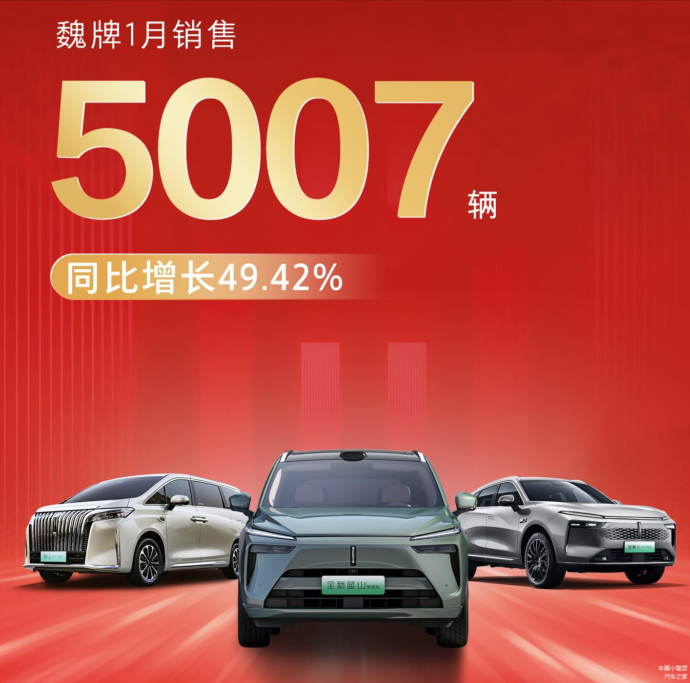2月3日,魏牌公布了1月份的销量,全系车型共销售5007辆,同比增长49.42%,但该成绩连新势力销量榜前十都进不了。
