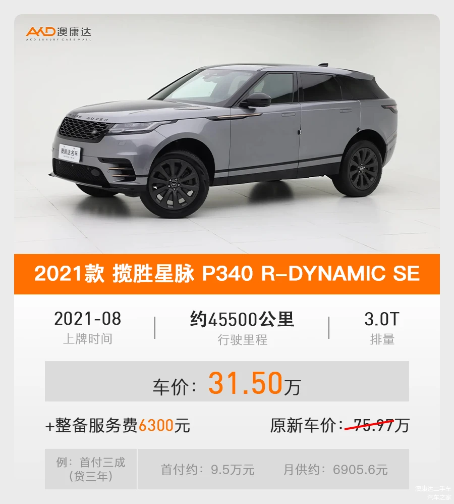定位于中型SUV 路虎揽胜星脉(图片 | 参数 | 询价),论气场,在同级别它能名列前茅,说越级不过分,整个外观就是个“小号揽胜”,高颜值强气场就是星脉的优势,介绍这辆天津澳康达在售的2021款 揽胜星脉 P340 R-DYNAMIC SE,还是高配版本,3.0T六缸、340马力、6.3秒加速,还有空气悬架、全时四驱、全地形反馈系统、全景影像、电尾门、前座椅加热、后排座椅电调、英国之宝音响等配置,并选配自适应巡航和方向盘加热,2021年上牌行驶约4.5万公里,现在仅需31.5万!
