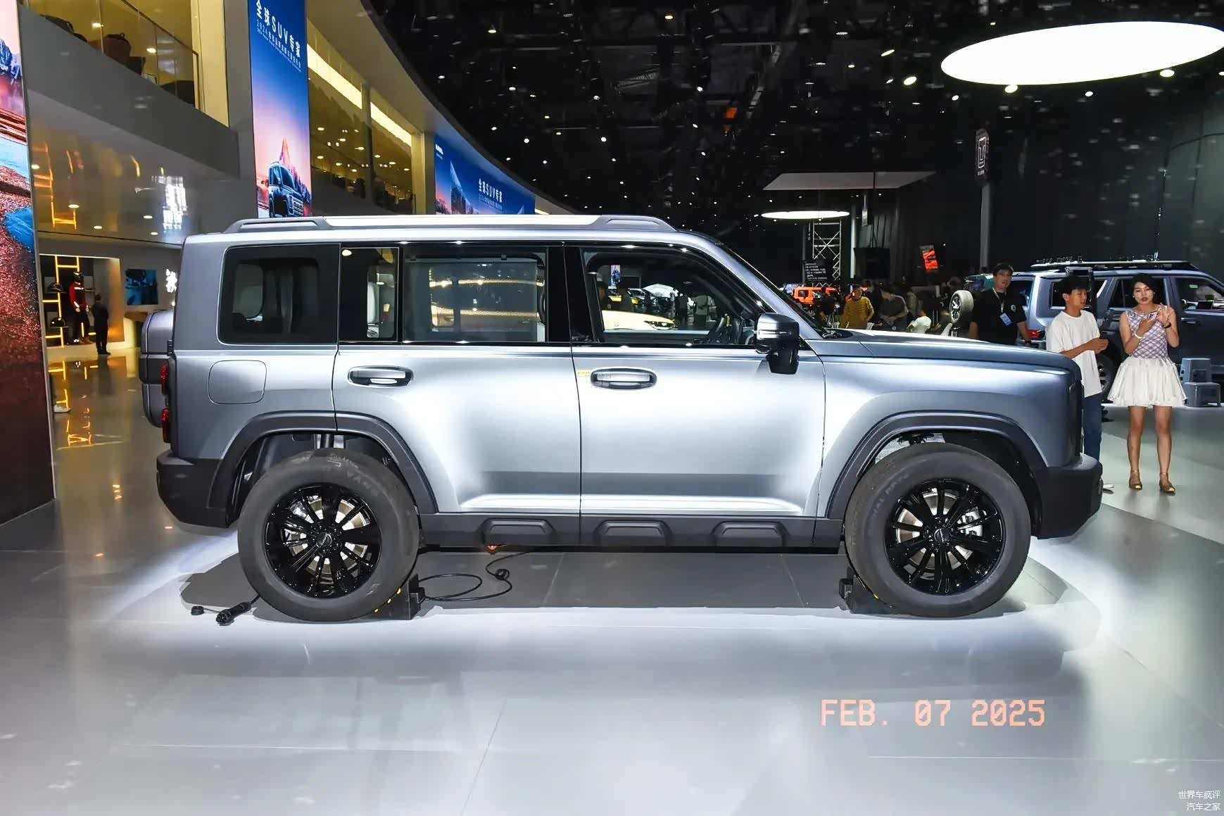 首先外观设计上就极具辨识度,整体造型硬朗大气,方正的车身轮廓搭配粗犷的线条,展现出一种不怒自威的霸气,前脸方形的大灯组与整车风格更加搭配,LED日行灯点亮时辨识度也很高。