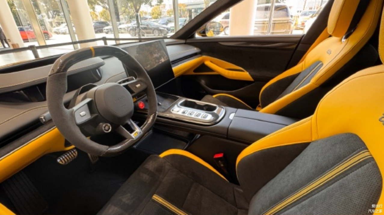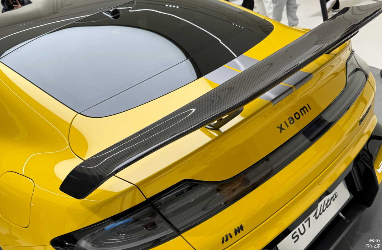 走进实车,小米SU7 Ultra的运动气息扑面而来。全车采用了多达17处的碳纤维材质覆盖件,包括前唇、侧裙、后扩散器以及固定式尾翼等,不仅有效减轻了整车重量57kg,还提供了高达285kg的下压力,显著提升了高速行驶时的稳定性。车身线条流畅,采用溜背式造型,搭配21英寸运动轮毂和Akebono前六后四活塞卡钳,以及倍耐力P ZERO轮胎,共同实现了令人惊叹的30.8米百公里制动距离,既具视觉冲击力又兼具实用性。