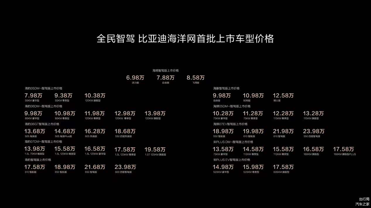 至于其他比亚迪车型,则基本按照指导价不变,全系加上了比亚迪智驾方案,买这些车就不用担心没有智驾了,不得不说,比亚迪科普智驾的决心确实太强了。