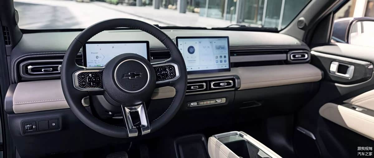 内饰方面,Spark EUV同样延续了宝骏悦也Plus的现代数字驾驶舱设计,贯穿式中控台上搭配了环形空调出风口,带有几分奔驰的高级感。此外新车还配备了三幅式多功能方向盘、8.8英寸液晶仪表和10.1英寸悬浮式中控屏,科技感的营造十分到位。