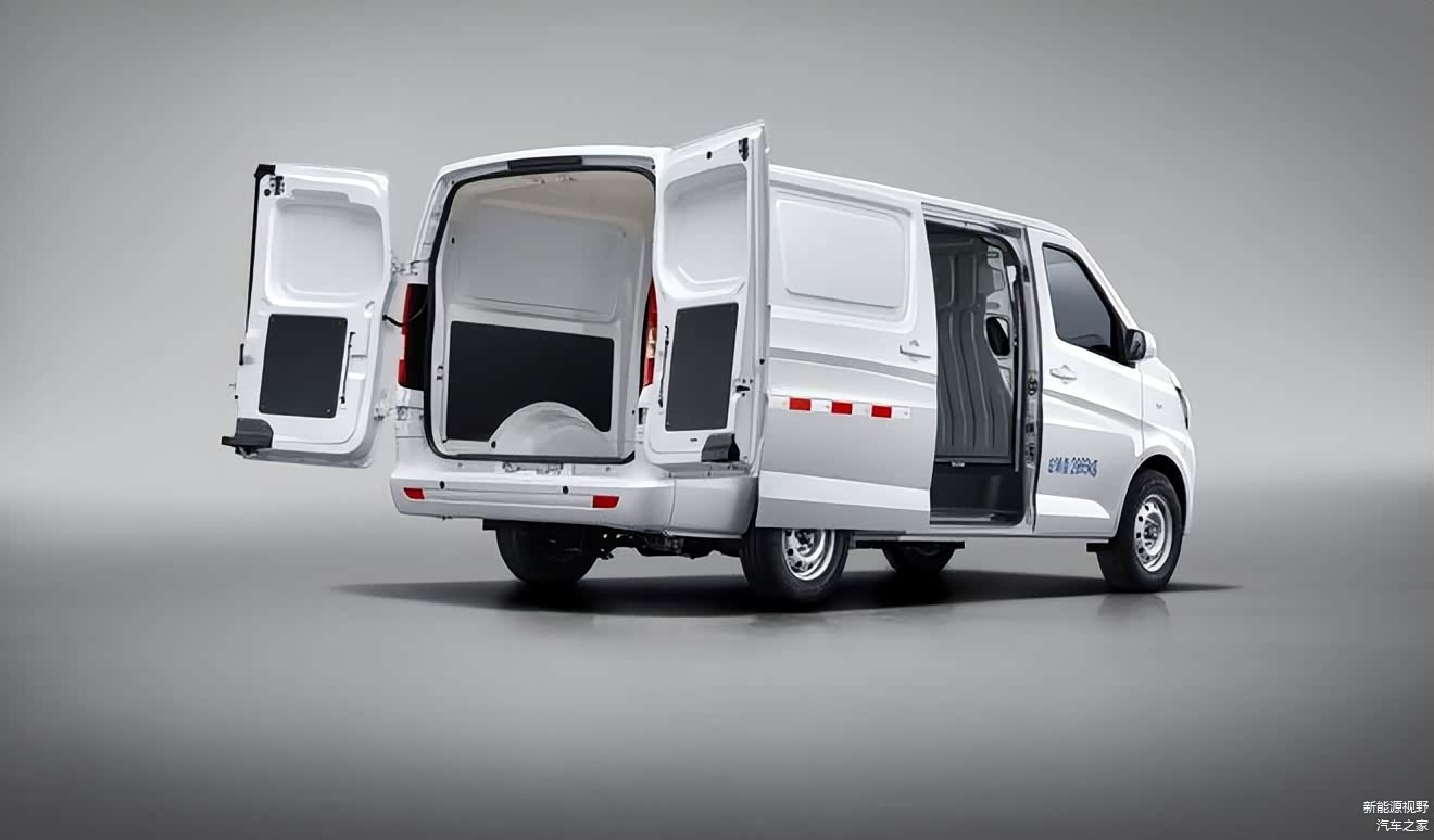 尾部,竖条状尾灯组,提高整车的视觉效果。下部均采用方正的扩散器,更有力量。货仓容积方面,EM60拥有约5.4立方米的载货空间,配备185mm轮胎;而EM80则拥有6立方米大空间,1.23m的超宽轮毂包间距,容积规整,搬运大件物品更方便。