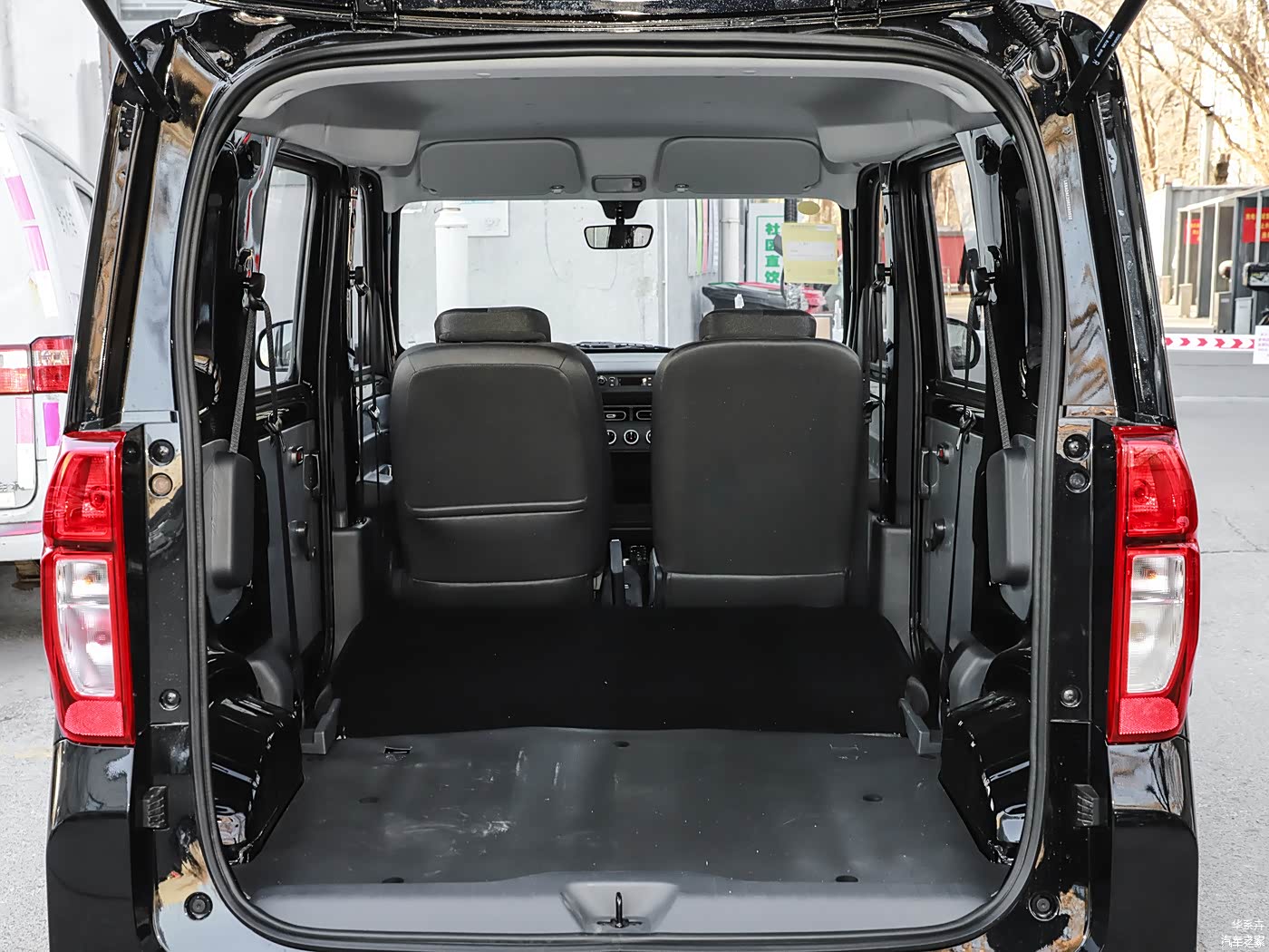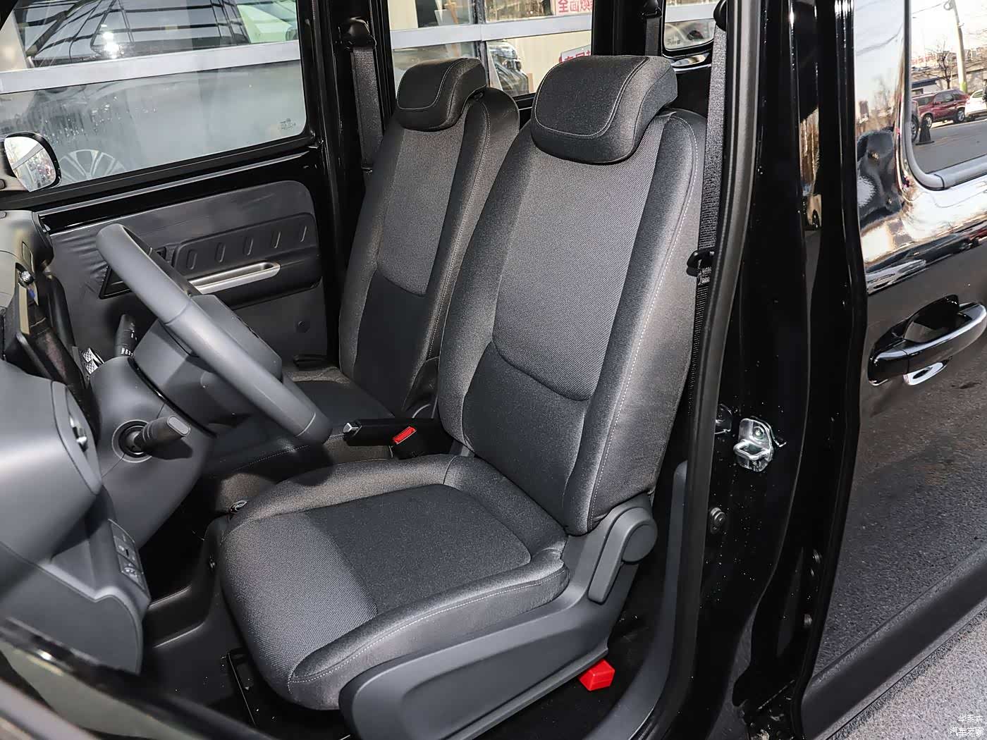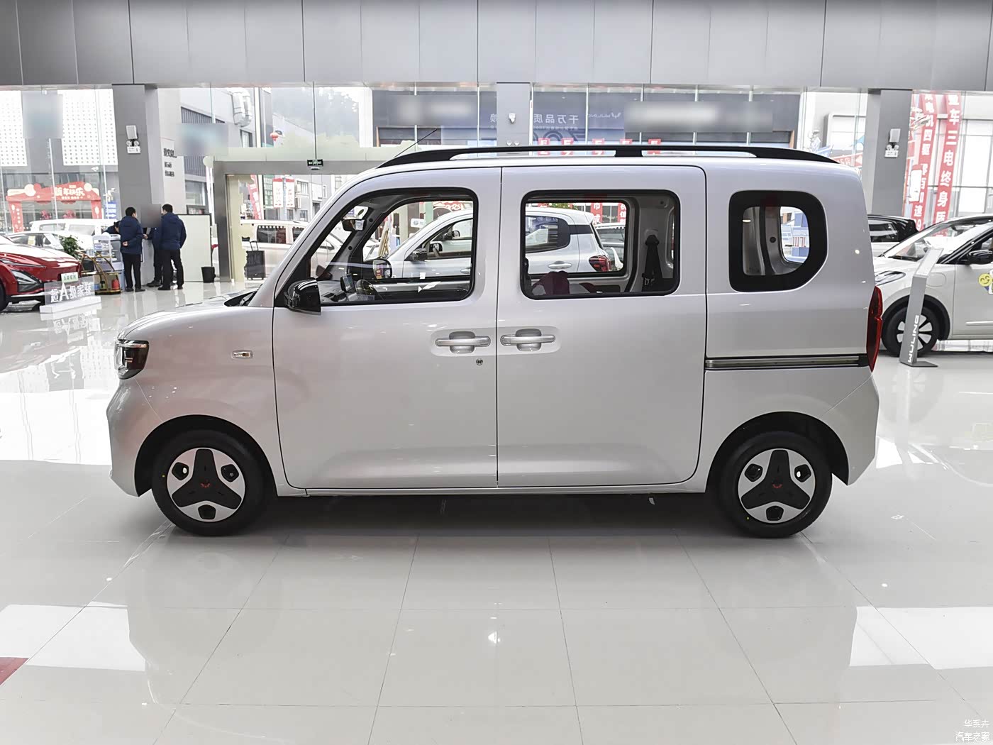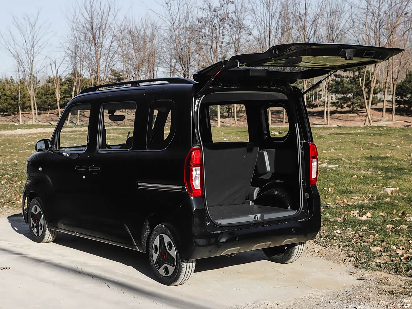 侧面采用“K-Car”风格的方盒子造型,确保车内空间利用率高。采用手动侧滑门设计,开口宽度达595mm,高配车型车顶装有行李架。车身长宽高为3685/1530/1765mm,轴距2600mm,属于又瘦又高的类型,走街串巷很方便,长轴距设计也进一步增加了空间利用率。