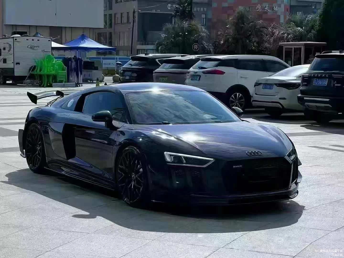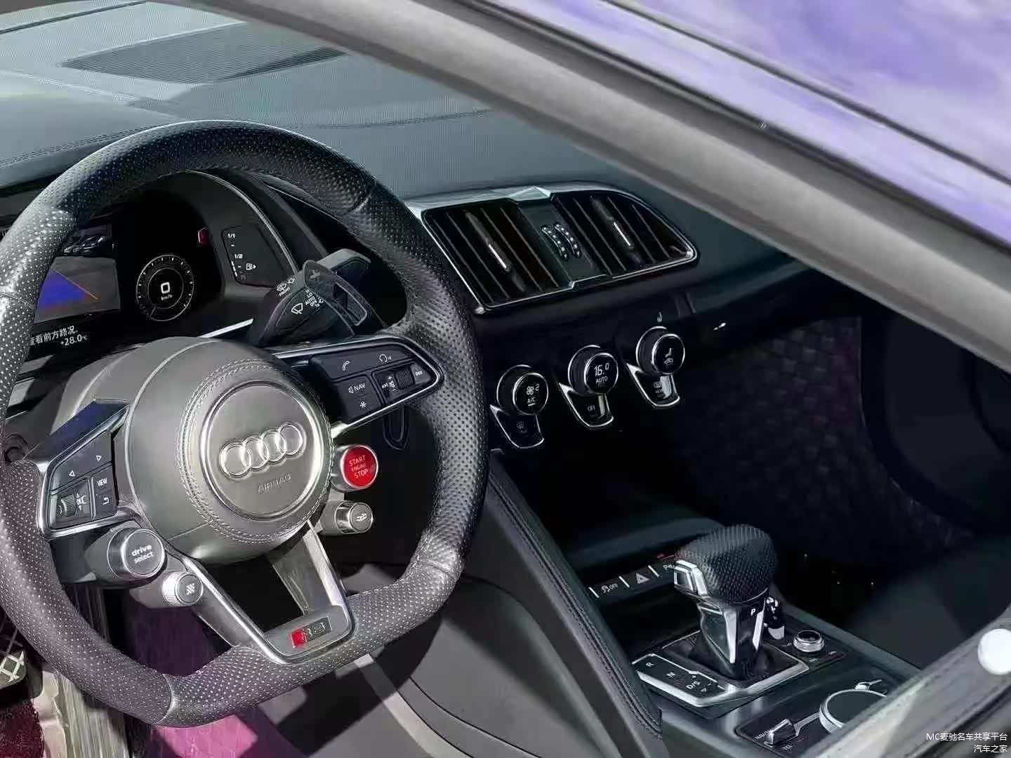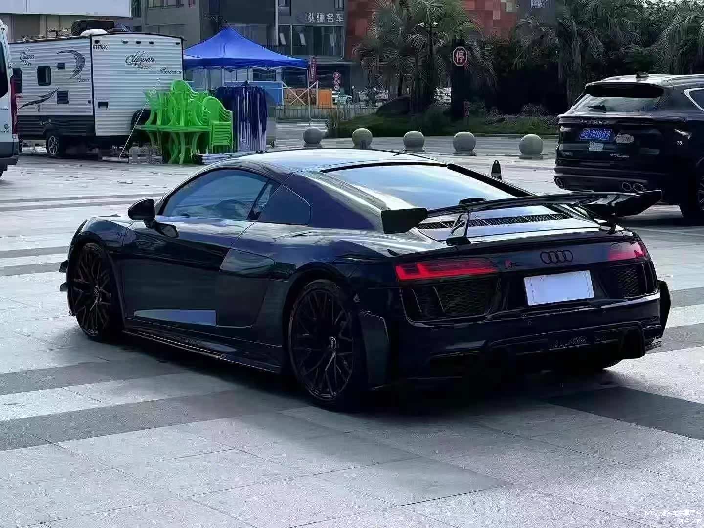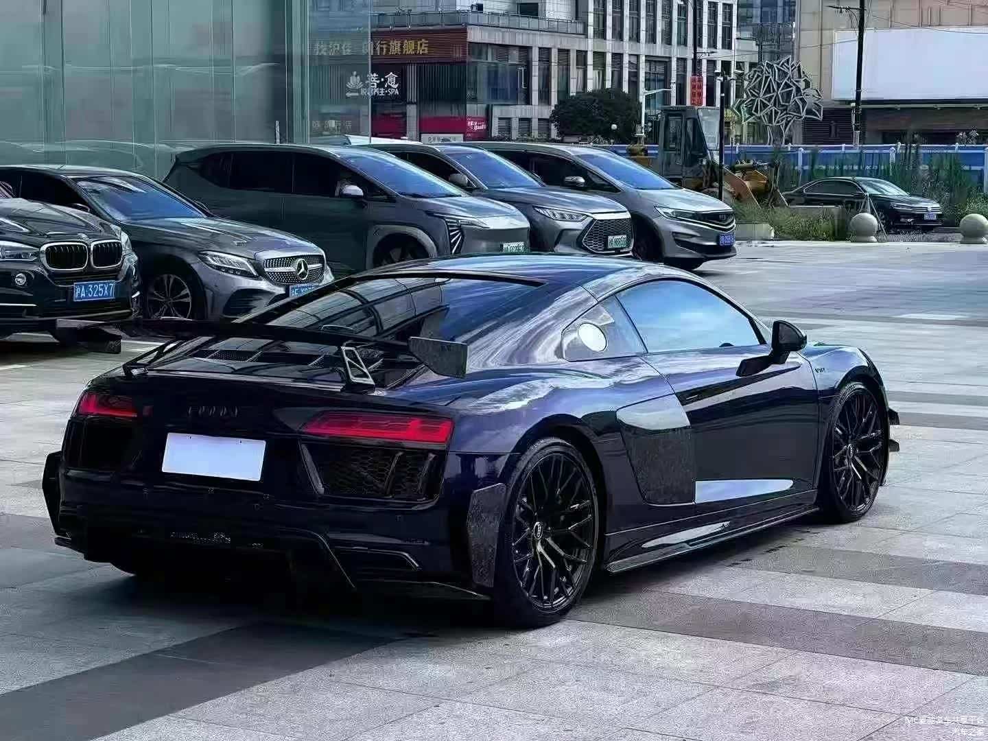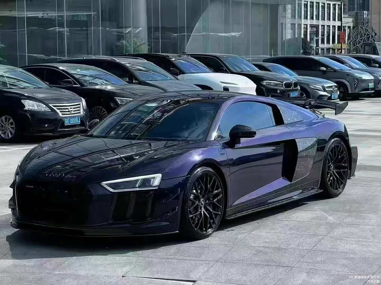 最新购入: 18年奥迪R8,紫色外观贴黑膜,黑内,雪花碳包围