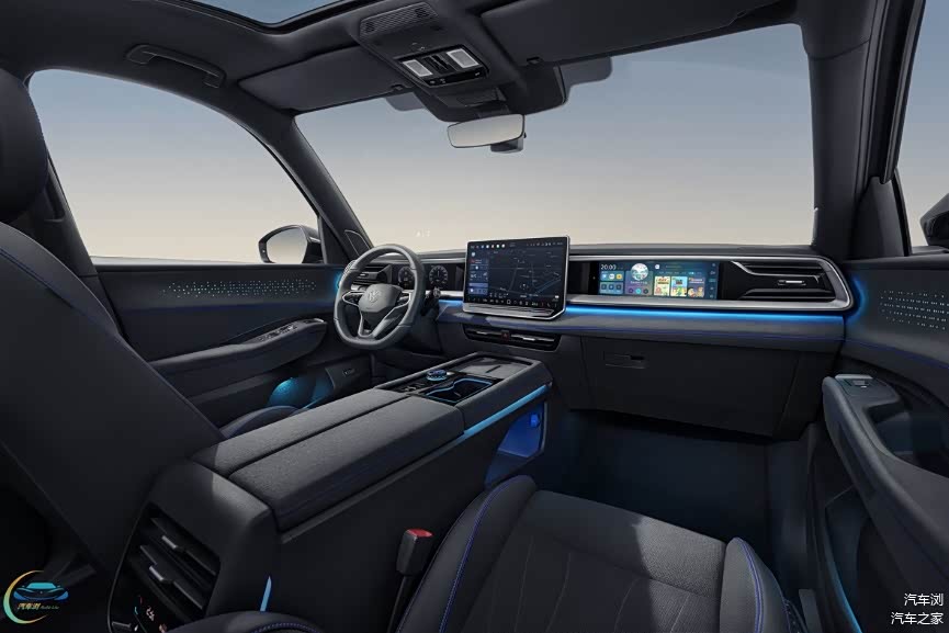 除了空间更大,途昂Pro的座舱布局也发生了显著变化,此前Pro系列上出现的多色氛围灯、反绒皮质座椅、6屏联动等装备一应俱全,不仅舒适性大幅提升,趣味感也是满满。