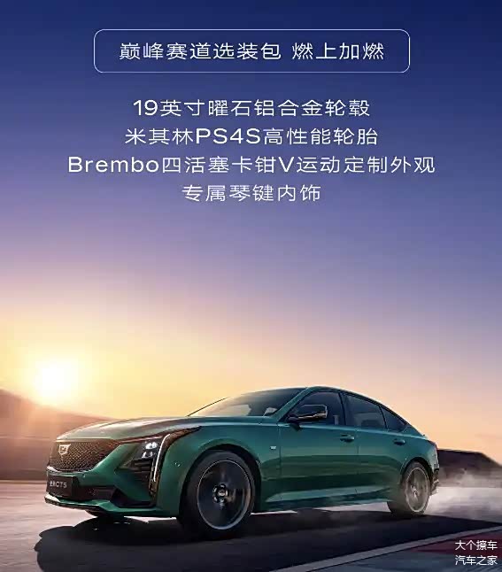 此外,最新版的凯迪拉克CT5赛道性能版还提供了与巅峰赛道相匹配的选装包功能,这包括19英寸的轮辋、米其林PS4S高性能轮胎、Brembo四活塞卡钳V的运动定制外观,以及专门的琴键内饰。