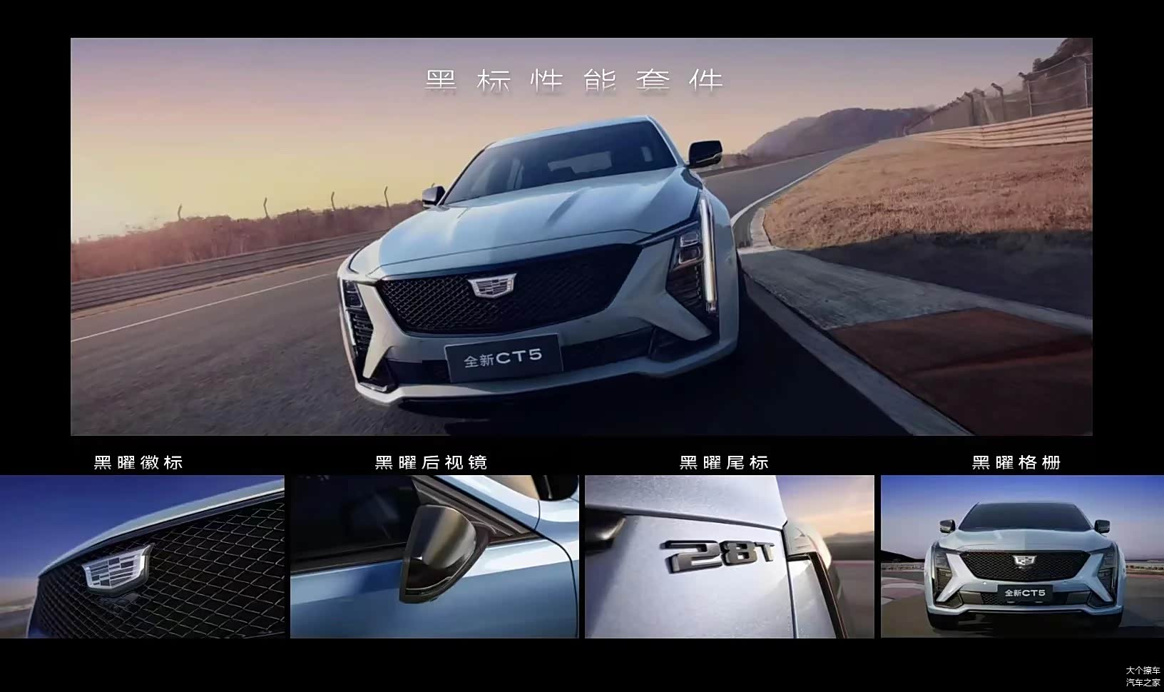 最新版的凯迪拉克CT5采用了黑标性能套件,这包括了黑色的品牌标志、黑色的外后视镜、黑色的菱形网状进气格栅、黑色的尾部字牌等等。除此之外,最新版的凯迪拉克CT5也推出了“台风绿”与“逐风蓝”这两种全新的颜色搭配,这两种颜色与凯迪拉克Blackwing的车身颜色相同。值得一提的是,这款限时免费的黑标性能套件和Blackwing同款车型的车身颜色都是赛道性能版车型的独家权益。