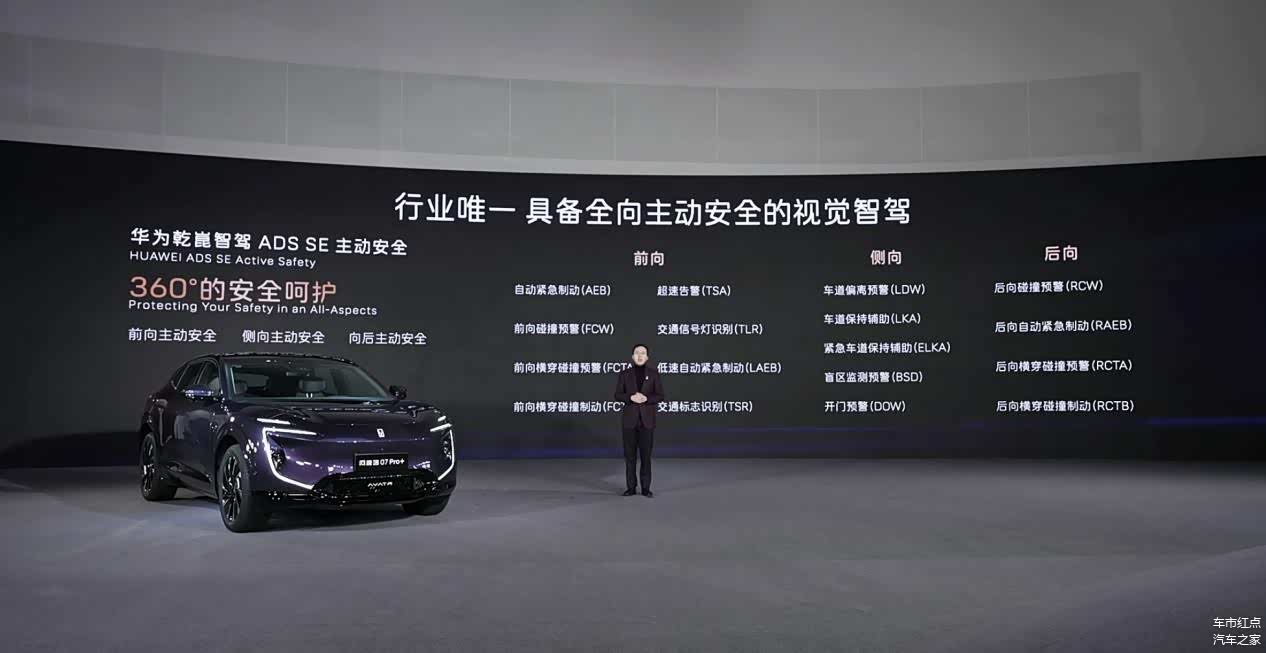 据阿维塔科技董事长陈卓介绍,在视觉领域,阿维塔07 Pro+所搭载华为乾崑ADS SE,也是目前行业唯一拥有全向主动安全的视觉智驾系统,拥有多达17项主动安全配置。