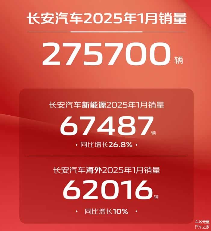 具体来看,长安品牌1月销量达到14.5万辆;启源1月售出1万辆,累计销量突破19万辆;深蓝汽车1月销量24575辆,同比增长34%;阿维塔1月份交付8826辆,同比增长超25%。