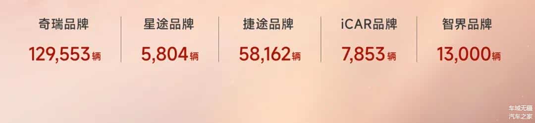 具体来看,奇瑞品牌1月销售汽车129553辆;捷途品牌1月销售汽车58162辆;iCAR品牌 1月销售汽车7853辆;智界品牌1月销售汽车13000辆。