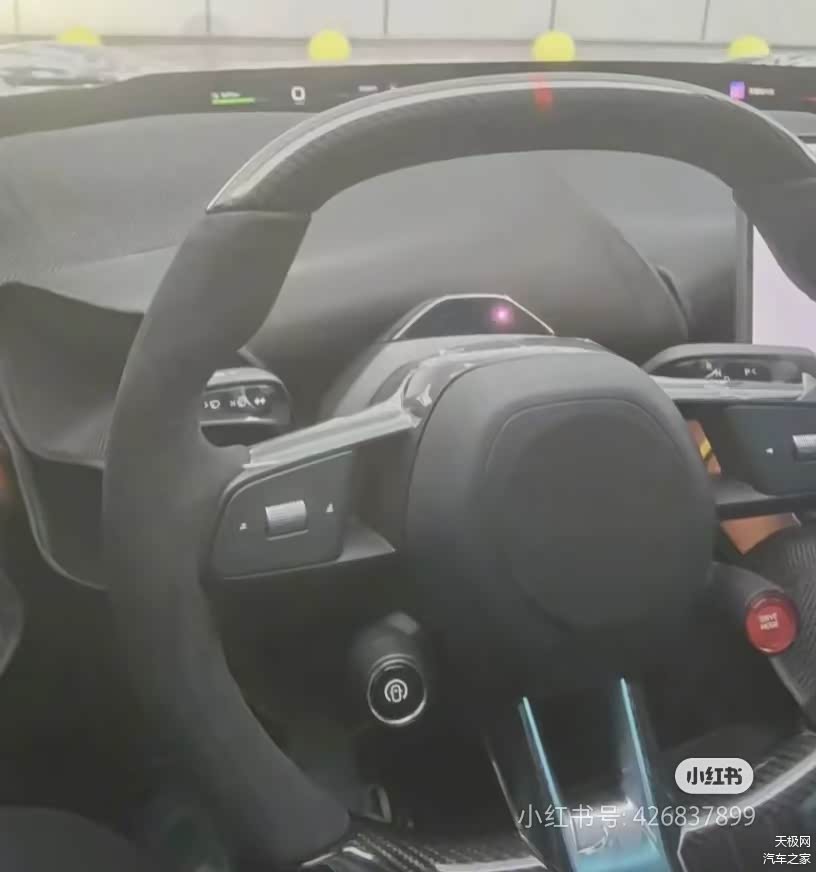 从谍照图看到,相较于SU7,小米YU7的方向盘首先有明显改动。中间采用双滚轮键设计,风格十分简约;依然保留了智驾功能和Boos狂暴模式实体按键,继承运动属性;方向盘上下握持处均采用碳纤维材质,看齐豪华运动跑车设计,对汽车发烧友来说简直是重大利好。