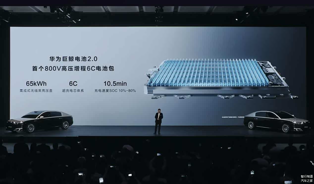 华为巨鲸电池2.0则主打高安全和高性能,尊界S800搭载了业界首个800V高压增程6C电池包,65kWh的电池,从10%充至80%只需10.5分钟;而纯电版为5C电池包,从10%充至80%只需12分钟。从充电效率也能看出,尊界S800主打的应该就是增程版。