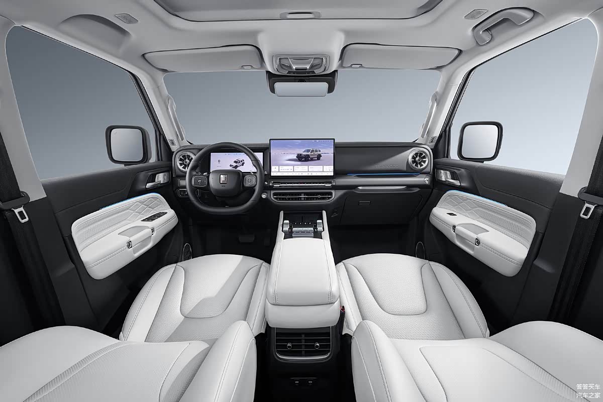 内饰方面,2025款坦克300的多功能方向盘采用双辐式设计,在方向盘的右手边新增了怀挡机构,悬浮式中控屏的尺寸更大,原换挡区域的布局更简洁,物理按键与拨杆的排列更有序、操作更方便,前方设置了双手机无线充电面板。