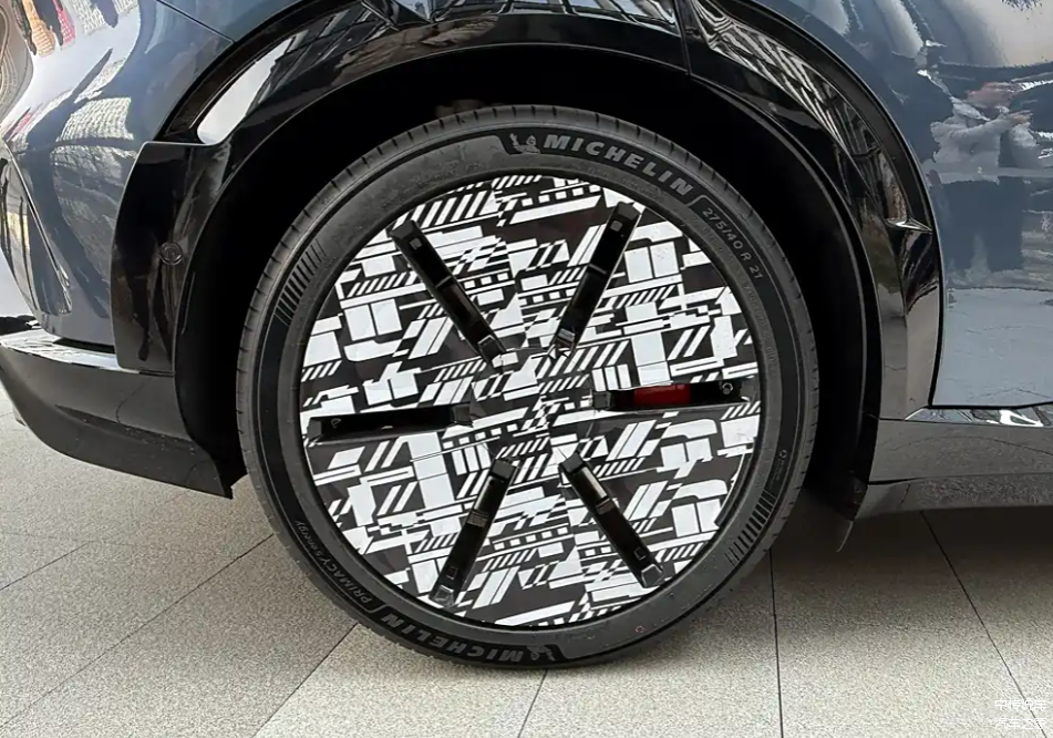 设计细节上,YU7配备了275/40 R21英寸的米其林轮胎,轮圈虽然进行了伪装处理,但红色刹车卡钳依然可见。刹车卡钳位置偏后,推测前悬架可能采用双叉臂设计,为新车提供了更加稳定的操控性能。前翼子板特定位置设有大量感应单元,下方还设计了进气口,有助于为电池和电机提供更佳的冷却效果。新车采用隐藏式门把手设计,与SU7的半隐藏式门把手有所不同,更加符合当下流行的设计趋势。