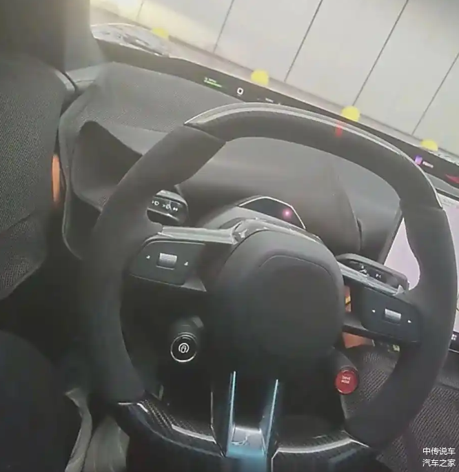 虽然新车外观未经伪装,但内饰部分进行了伪装处理,使得仪表盘难以辨认。不过,从方向盘的设计来看,新车采用了扁平设计,饰以翻毛皮和碳纤维材质,提升了内饰的质感和运动氛围。中控台大小与SU7相似,但前挡风设计增加了一系列大连特色长屏幕。因此,新车可能未配备传统仪表盘,相关信息可在大连显示屏上展示。从这一角度看,新车内饰设计较SU7更为先进、科技感十足。