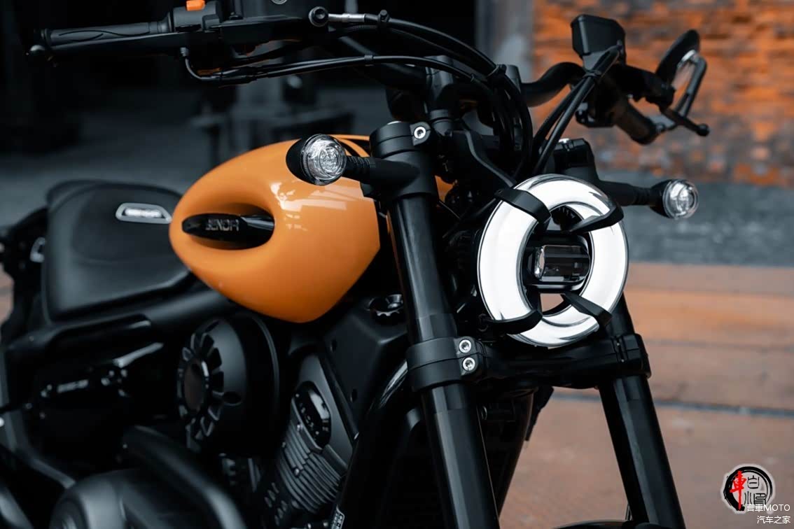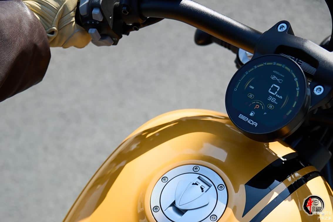 灯光系统:全车采用LED光源,大灯采用镂空结构+透镜设计,环形日行灯无灯罩遮挡,科技感十足;贯穿式尾灯与悬浮式车尾融合,辨识度极高。值得一提的是,头灯提供了自动感光开启功能,实际使用场景凸显便利。车机仪表采用经典圆形LCD液晶屏,保留传统仪表的机械质感,集成奔达BCD互联系统,车机互联功能简化操作逻辑,手机解锁提升日常便利性。此外,边撑熄火、起步保护、USB充电等实用配置,提升了车辆的安全性和便捷性。