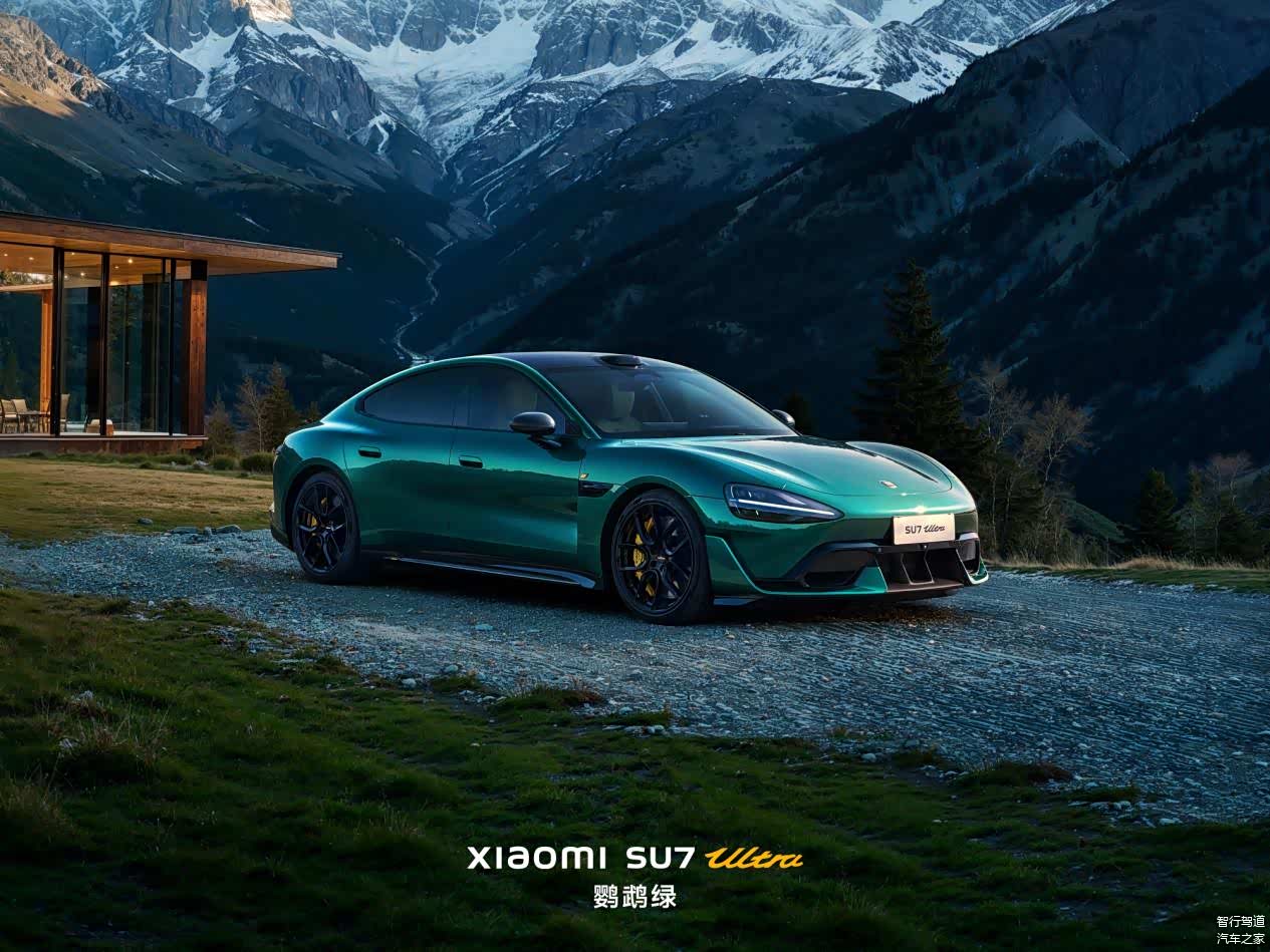 小米SU7 Ultra的配色也相当亮眼,除了长期出镜的闪电黄,还有标准的黑白两色,以及太空银和鹦鹉绿两款颇具高级感的车漆。
