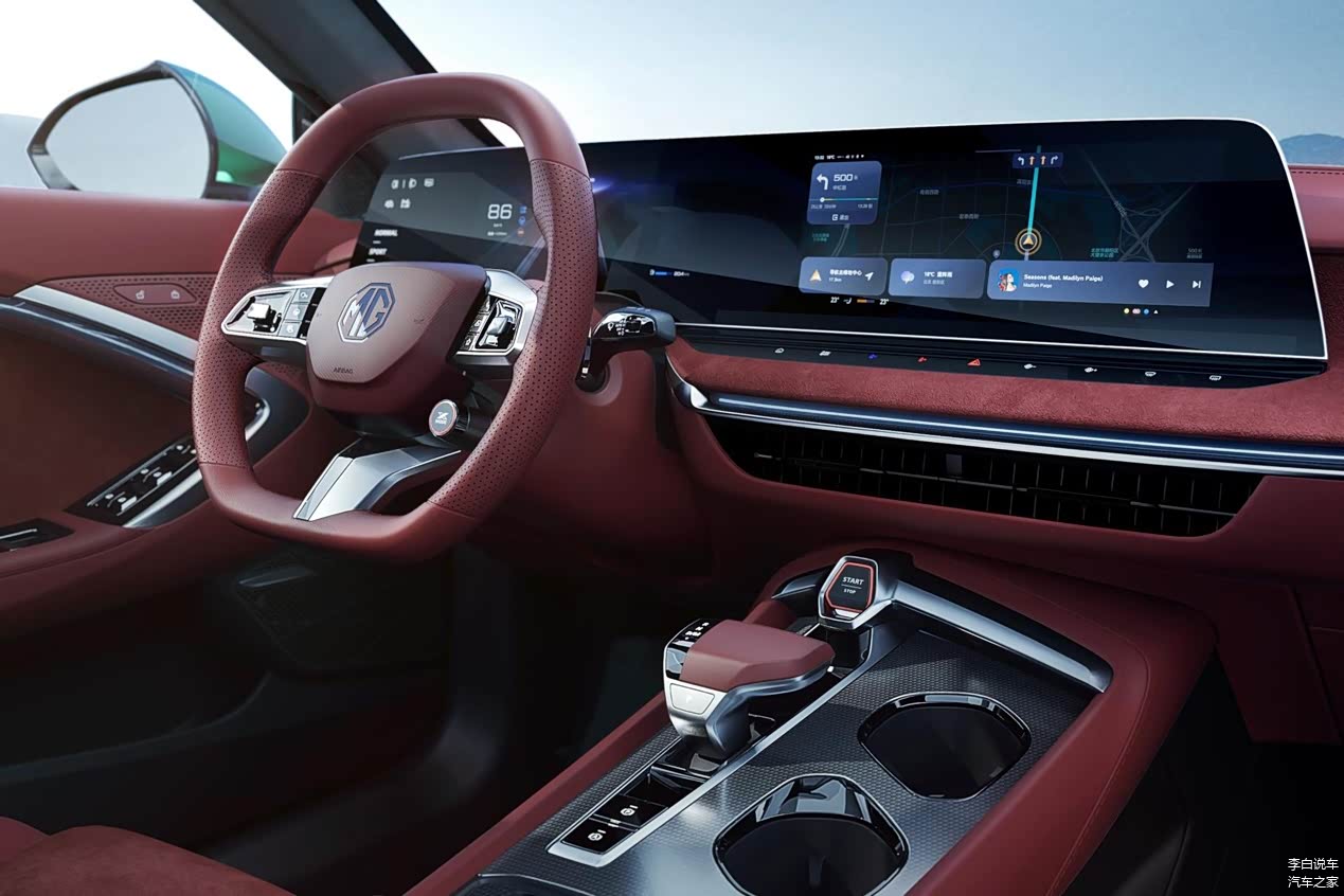 红旗的设计近年来突飞猛进,H5可以说是故宫美学遇上赛博朋克。外观方面,拥有直瀑式“高山飞瀑”格栅+贯穿式旗标灯带,4988mm修长车身自带行政气场,车尾“北斗之翼”贯穿尾灯与镀铬双出排气,完美平衡古典与科技感。内饰设计则拥有12.3英寸曲面双联屏+山水纹理饰板,253色氛围灯随音乐律动,电子挡把内嵌和田玉纹理——这届红旗是把文化自信玩明白了。再看看MG7,完全是西装暴徒的自我修养。MG7是黑标MG首款轿跑,4884mm溜背车身+无框车门+三段式电动尾翼,翡冷翠车漆在阳光下泛起金属涟漪,四出排气自带“暴躁”BGM。车内配备33英寸一体式曲面屏贯穿中控,Dinamica麂皮赛道座椅带金属安全带扣,启动按键竟藏在中央扶手暗格里——这设计够中二,但年轻人就吃这套。两台车中,开红旗H5像穿着中山装参加国际会议,开MG7如同穿着赛博机甲闯秋名山。要仪式感选红旗,要回头率选MG。