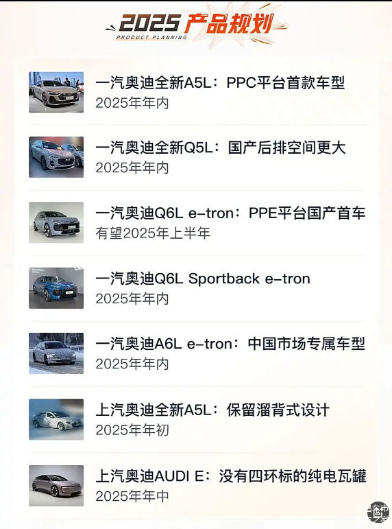 奥迪2025年新车计划:六款新车齐发,剑指销量回升