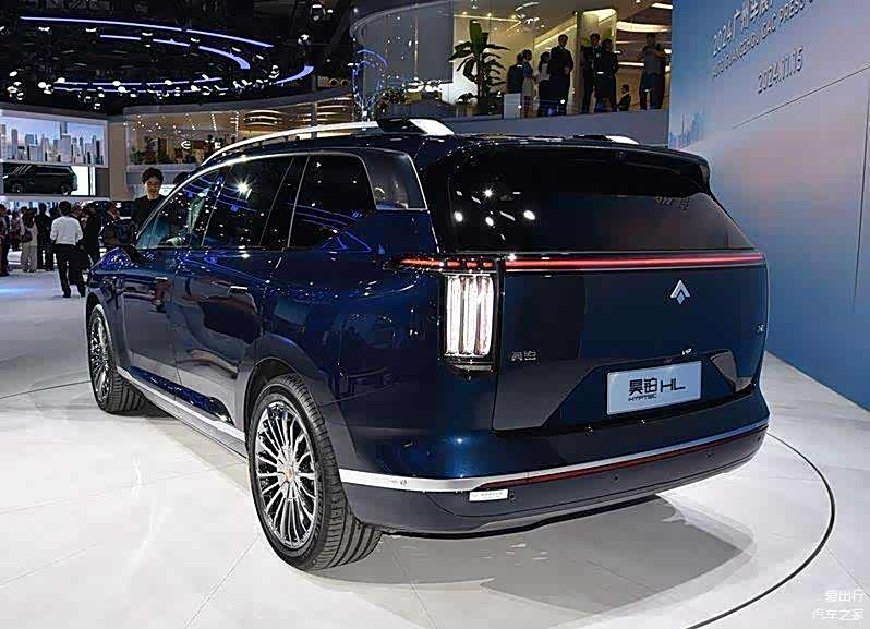 在车身尺寸方面,昊铂HL的长宽高分别为5126毫米、1990毫米和1730(1750)毫米,轴距长达3088毫米,定位为6座中大型SUV。车身侧面线条流畅,配备了车顶行李架和20/21英寸桨式悬浮高亮轮辋等装备,风阻系数低至0.268。车尾部分,贯穿式的LED尾灯内部呈现出三条纵置灯带,与前大灯风格相呼应,辨识度同样出色。