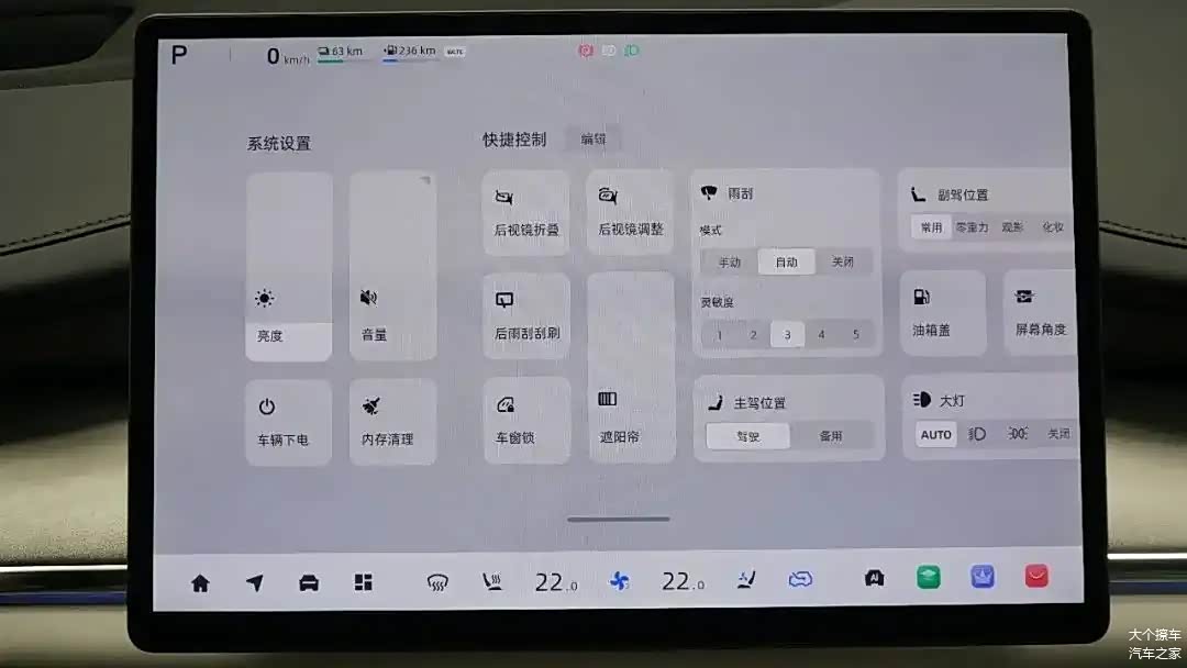 车辆内部配备了一块向日葵主题的中控显示屏,该屏幕能够向两侧自由旋转,以满足主驾和副驾乘客的信息读取需求。通过滑动菜单,用户可以轻松打开操作界面,界面内的卡片可以自由选择和拖曳位置,其功能范围包括儿童锁、灯光控制、天幕遮阳帘调节和后视镜调节等,使用起来非常方便。