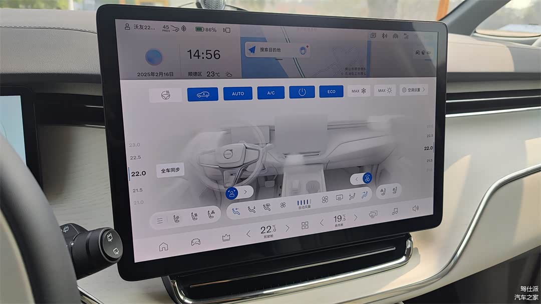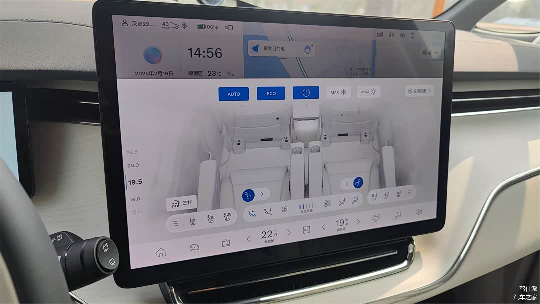 另外首页的布局也更偏向于实用,常用功能都用小卡片的形式“堆”在了左侧,位置更就手,渲染效果比较简洁,只是略微少了一些设计感。空调设置方面,前排的驾驶舱和二排的乘员舱各有一个独立界面,这部分和009是一样的。