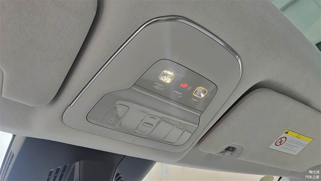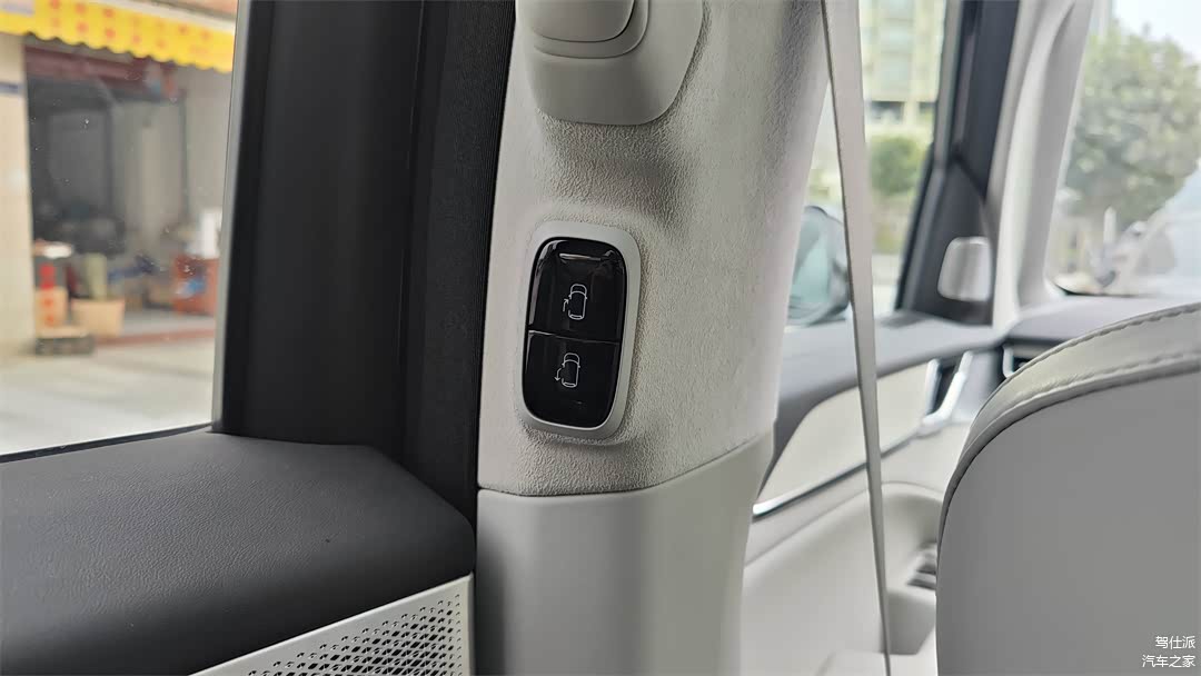 除了车机软开关之外,前排顶棚位置也带有可以控制二排两侧滑动门的触控键。连带二排B柱内壁上的实体键、外侧门把手、内侧门把手、语音控制、实体钥匙、手机APP,这组滑动门一共有八种不同的控制方式。功能冗余程度之高,已经成了智能车时代的常态了。