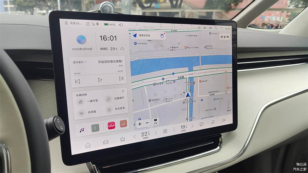 车机中控屏的大黑边肉眼可见,日常使用的流畅性问题不大,只是因为使用单8155芯片,地图拖拽起来帧率很低,跟手程度一般,诸如3D车模这种“华而不实”的功能也是没有的。