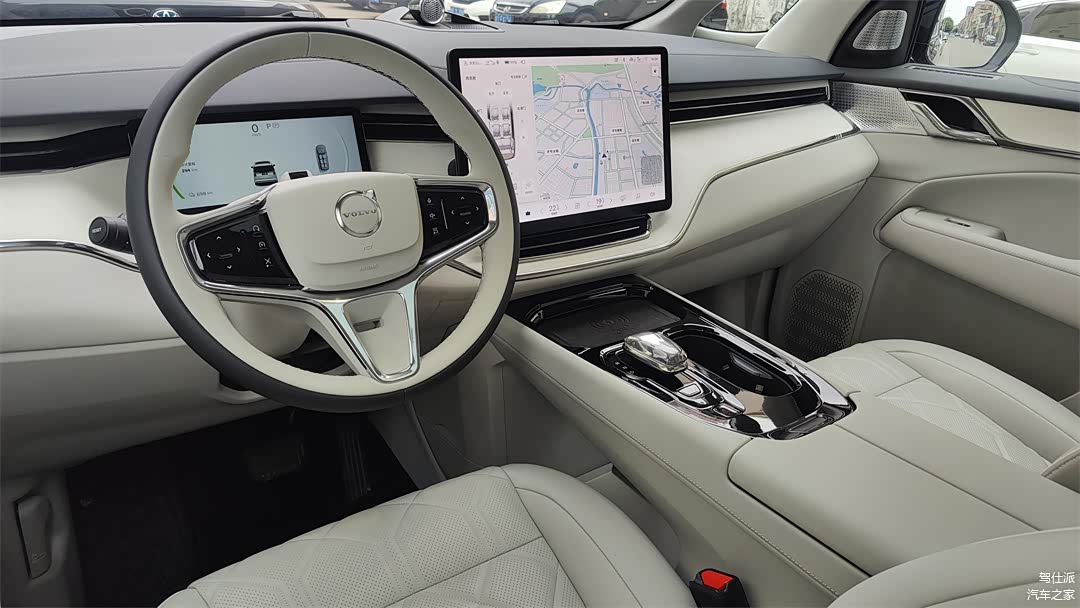 进入车内,中控台的整体框架在延续009布局的基础上,做了更贴近于沃尔沃简约风格的处理。虽然层次分割还是比正牌的沃尔沃更复杂一些,但是主打白色的配色,和更高级的皮料包裹还是很到位地提升了座舱的档次感。仪表盘带有遮光的设计要给个好评。
