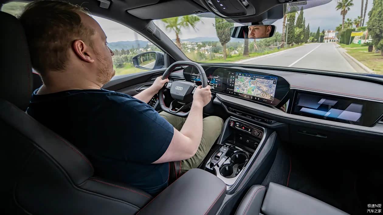 驶离蜿蜒山路,切换至舒适模式后,SQ5 在精致度与驾乘舒适性方面的表现堪称完美。我们行驶在西班牙平坦的柏油路面上,车辆能够出色地过滤掉路面的细微不平整。同时,车内对风噪和路噪的隔绝效果极佳。